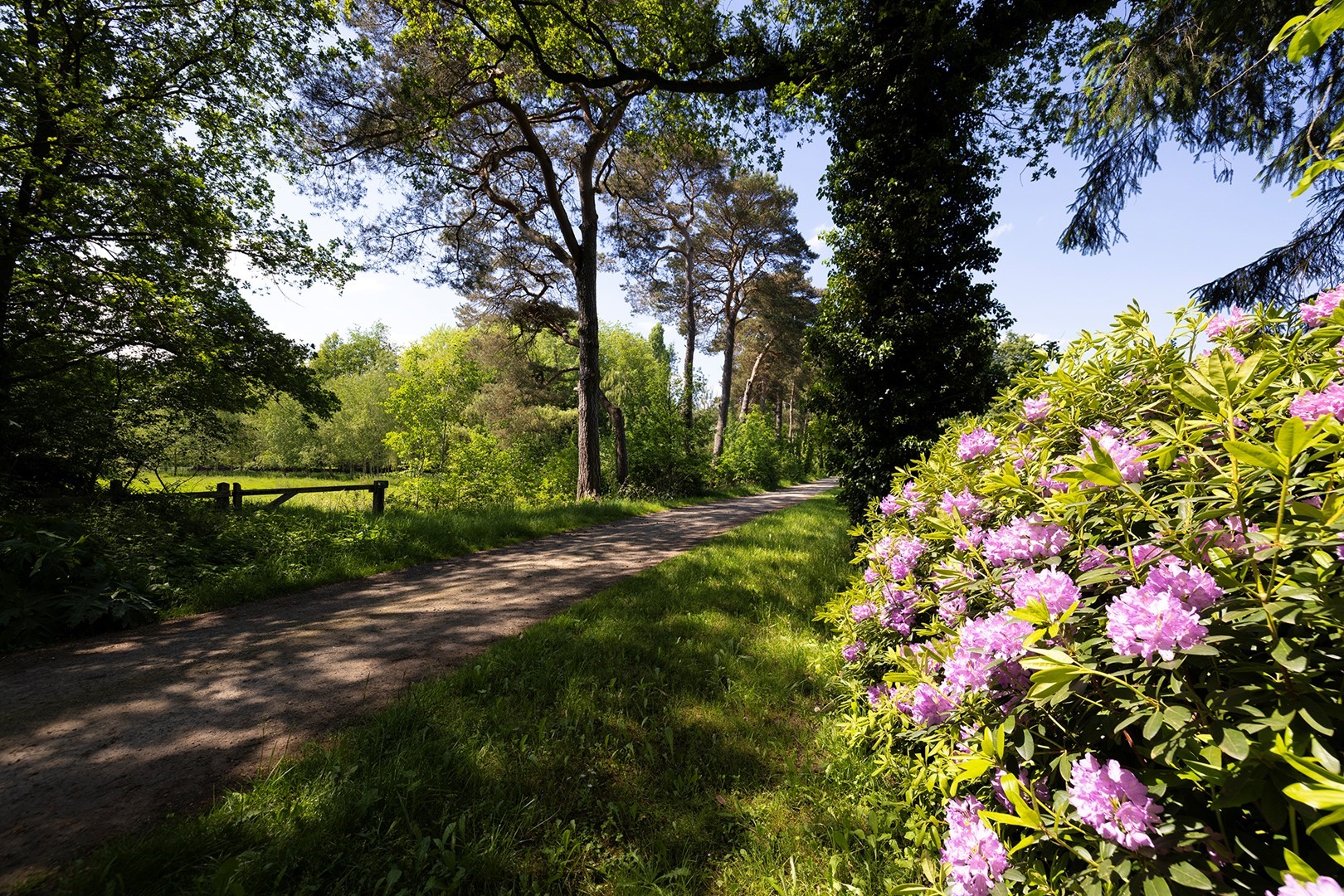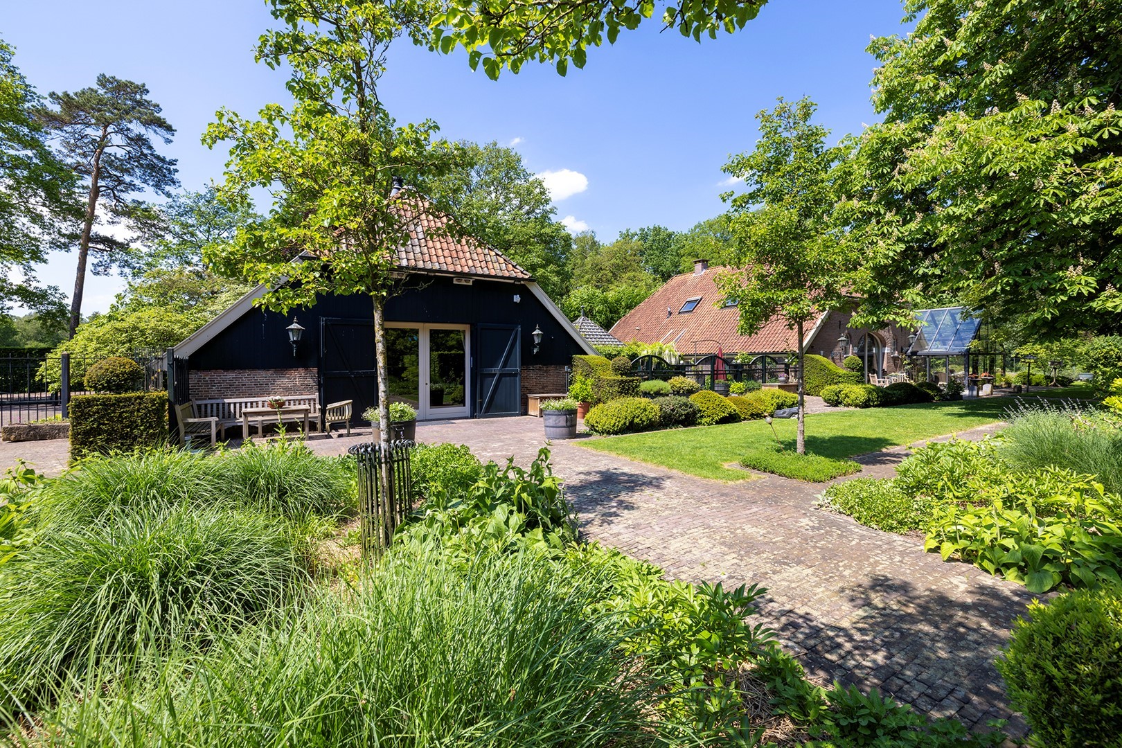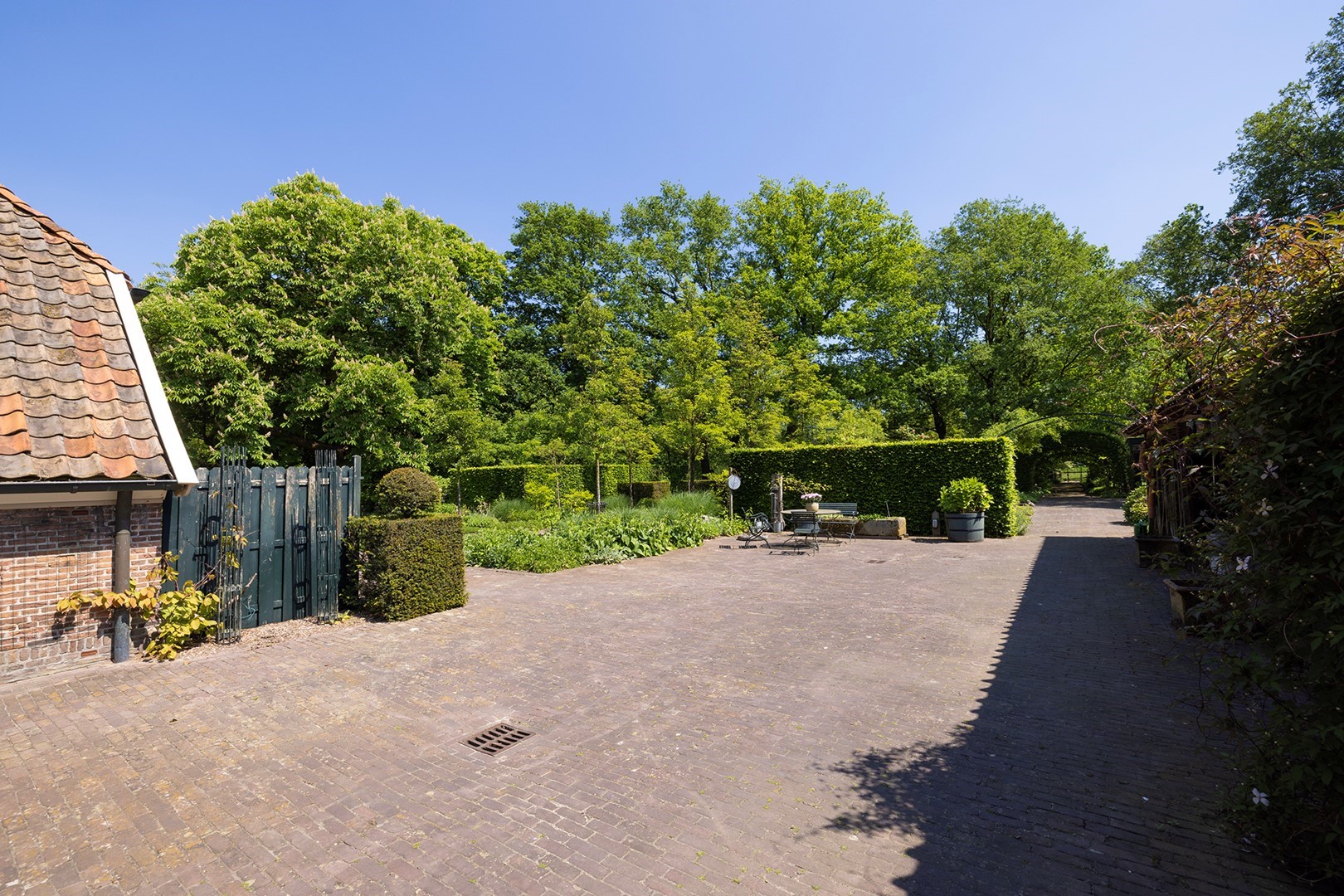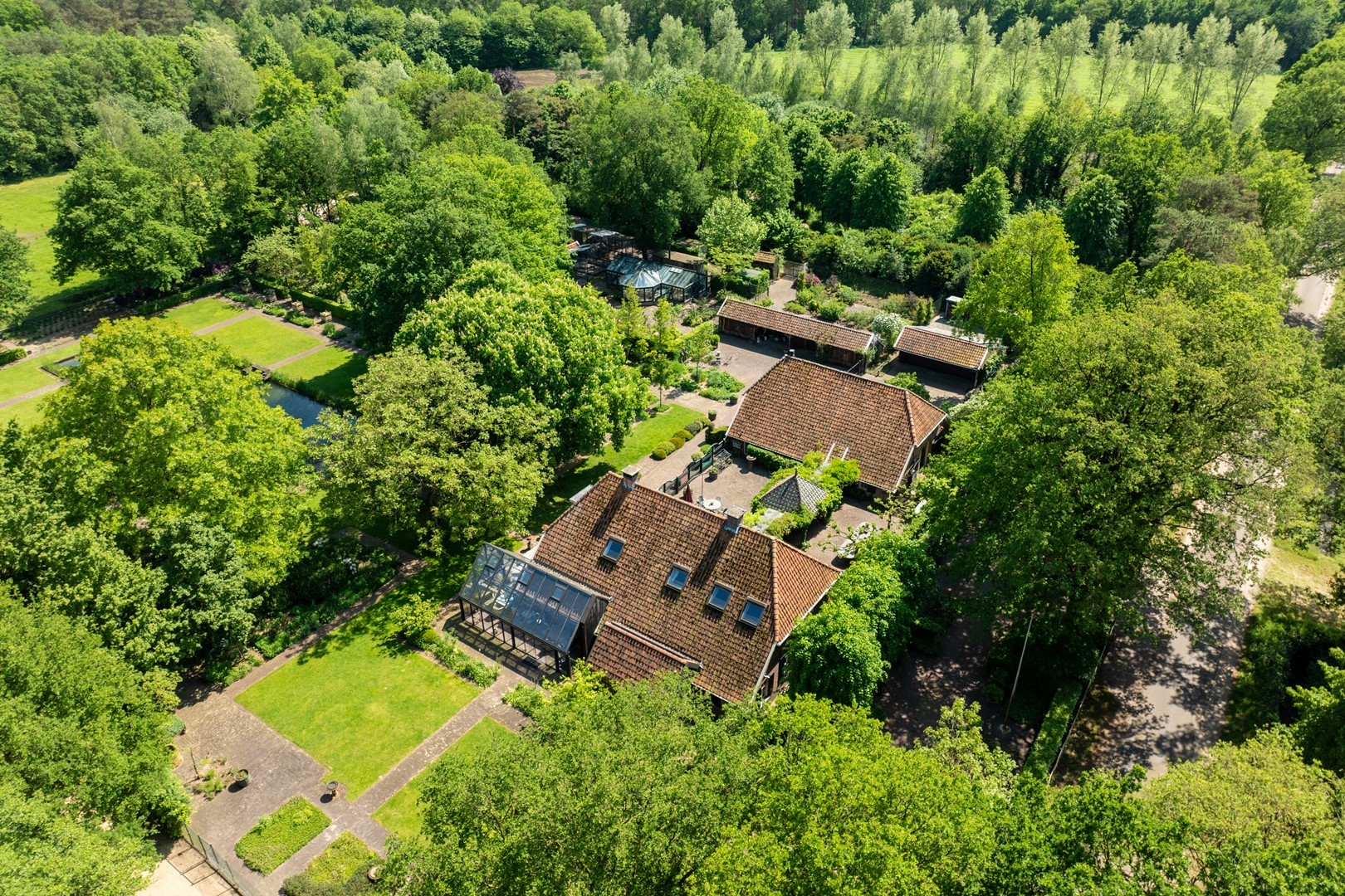 Met een gastvrij voorplein, uitbundige bloeiers en ruime parkeergelegenheid aan de voorzijde valt de ruim 100 jaar oude woonboerderij direct op. Toch kunt u vanaf die plek de grootsheid van dit 5 hectare tellende landgoed nog niet vermoeden. Aan de achterzijde reiken haast eindeloze zichtlijnen – over de langgerekte vijver heen – tussen schapen en eeuwenoude bomen door. Van al dat moois is één hectare omheind als tuin. Daarachter treft u uitgestrekte weilanden, bospercelen, vijverpartijen omrand met knotwilgen en ruisende platanen. Mens en dier leven er in harmonie samen dankzij het uitgebalanceerde landschap ontwerp van Arend Jan van der Horst.