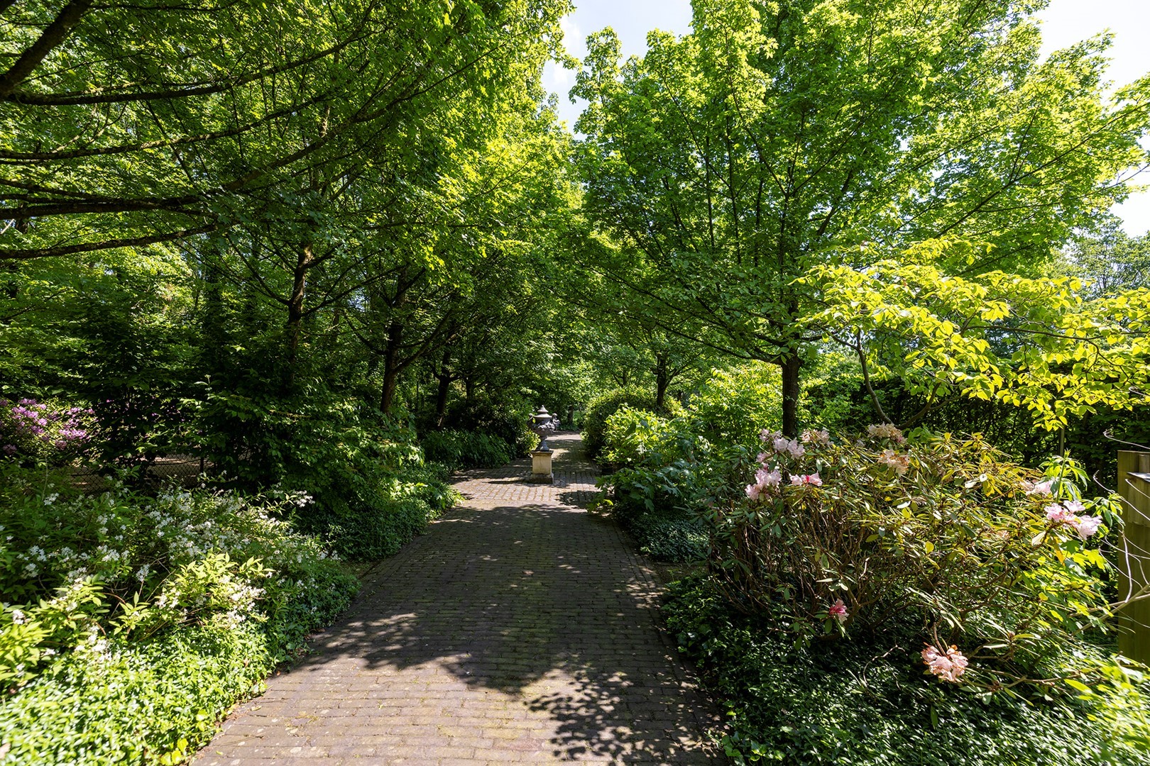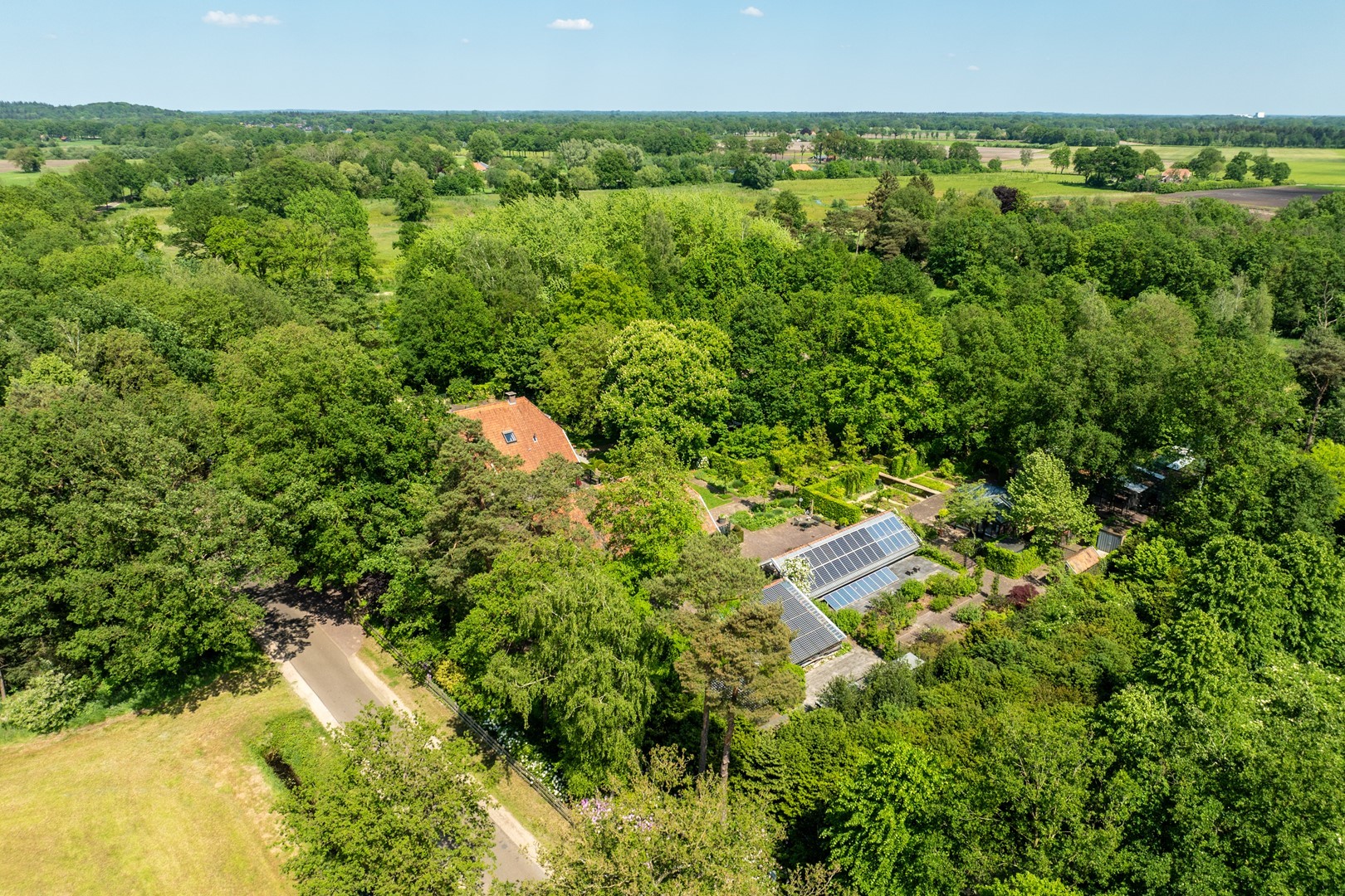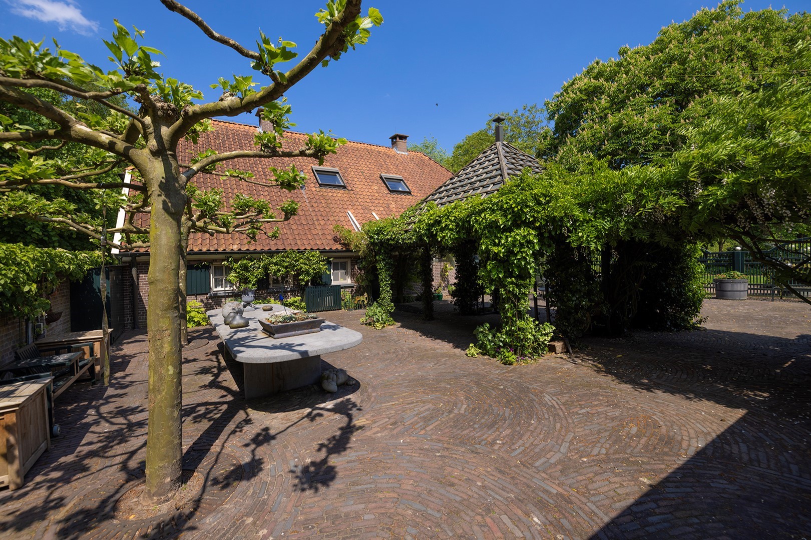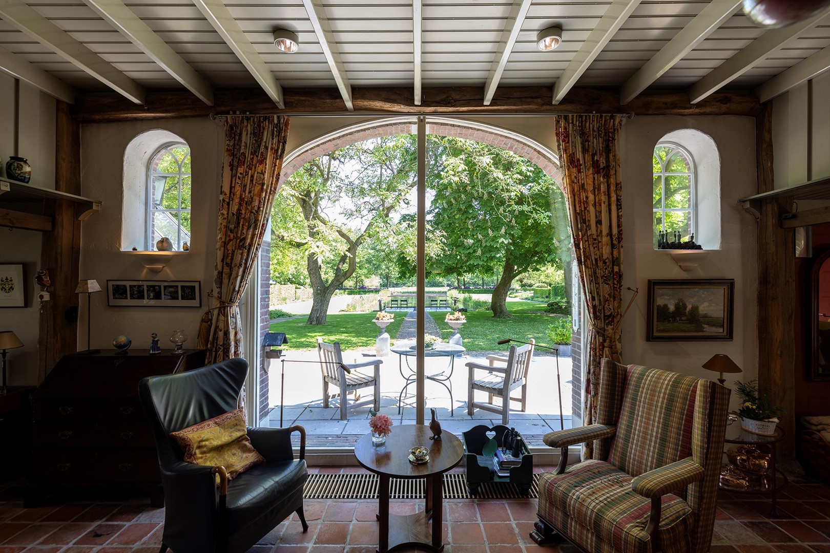 Met een gastvrij voorplein, uitbundige bloeiers en ruime parkeergelegenheid aan de voorzijde valt de ruim 100 jaar oude woonboerderij direct op. Toch kunt u vanaf die plek de grootsheid van dit 5 hectare tellende landgoed nog niet vermoeden. Aan de achterzijde reiken haast eindeloze zichtlijnen – over de langgerekte vijver heen – tussen schapen en eeuwenoude bomen door. Van al dat moois is één hectare omheind als tuin. Daarachter treft u uitgestrekte weilanden, bospercelen, vijverpartijen omrand met knotwilgen en ruisende platanen. Mens en dier leven er in harmonie samen dankzij het uitgebalanceerde landschap ontwerp van Arend Jan van der Horst.