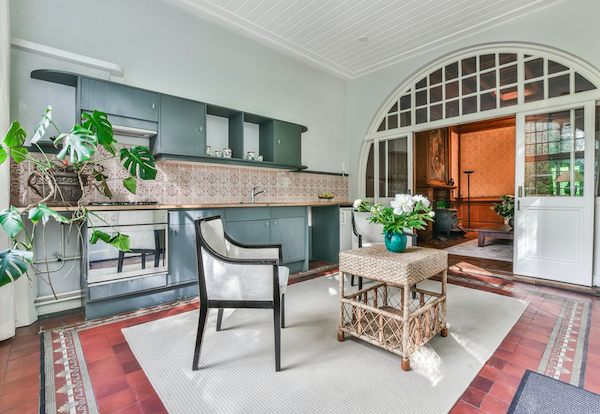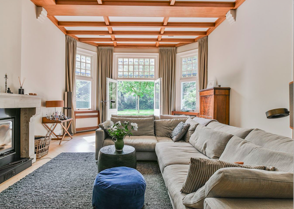 Zelfs enkele originele meubelstukken zijn teruggekeerd. Authentieke details die deze villa zo bijzonder en sfeervol maken zien we terug op plafonds, deuren, vloeren en in raampartijen met glas in lood. Naast die originele details valt in deze woning ook de materiaalkeuze op. Zo worden duurzame, hardstenen plavuizen vloeren afgewisseld met massief eiken vloeren en zien we in de ruimtes met parketvloeren prachtige art-nouveaumotieven. Een van de woonkamers heeft zelfs een gebrandschilderd eiken plafond.
