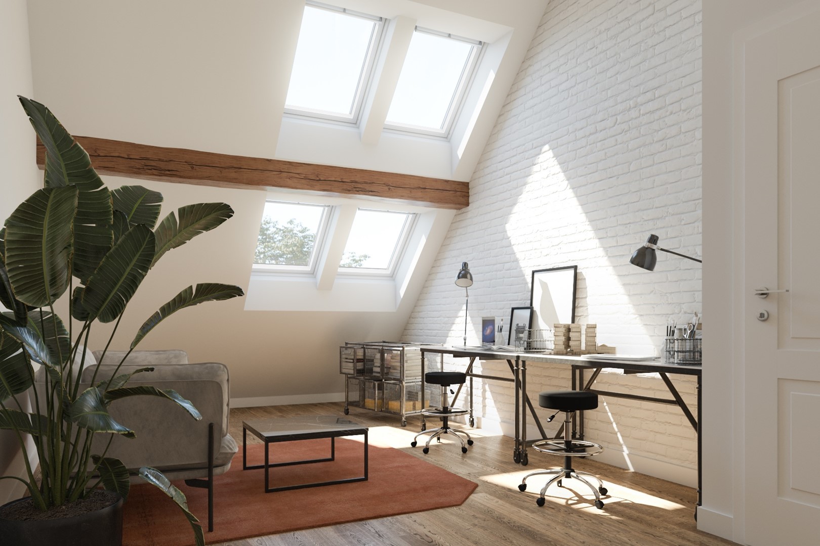 Met slimme oplossingen zoals gekoppelde dakramen of een lichtstraat blijft de sfeer in balans, of je nu werkt, leest of gewoon even uitcheckt.