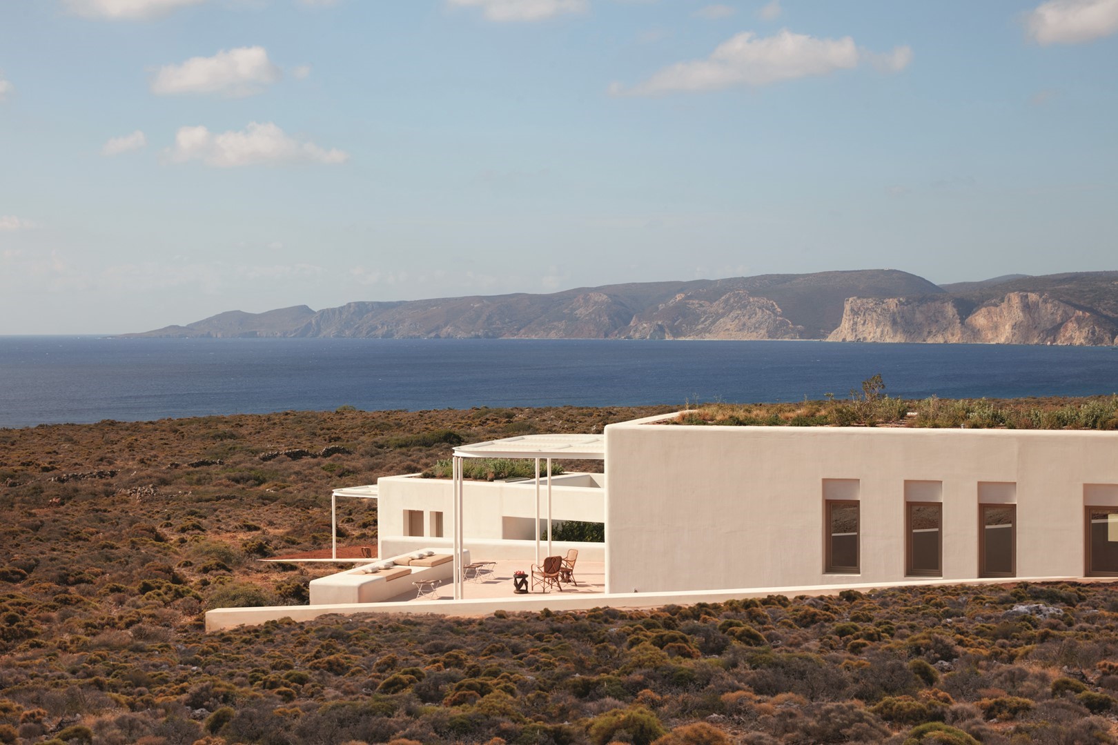 Op het afgelegen eiland Kythira, daar waar volgens de mythe Aphrodite uit het schuim van de zee geboren werd, ontwierp het design-duo van Pendhapa Architects een villa die gevormd lijkt te zijn door de elementen zelf.